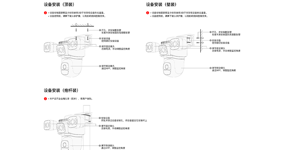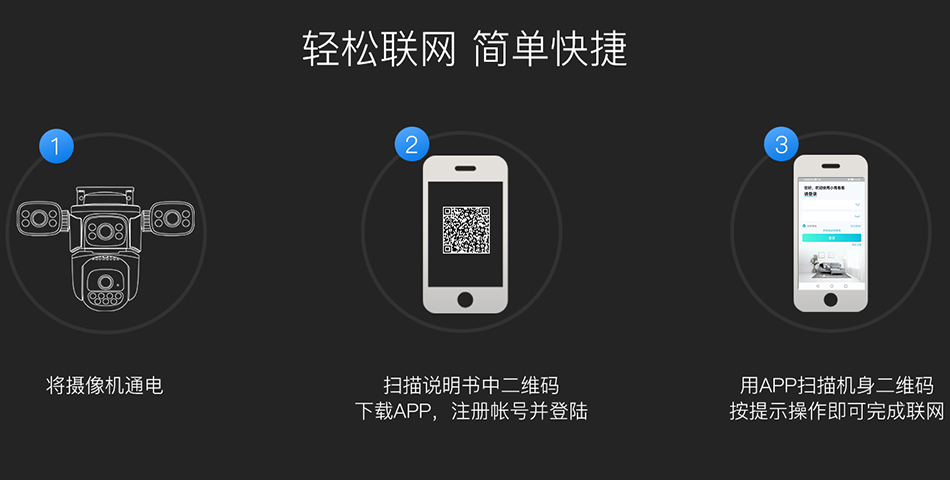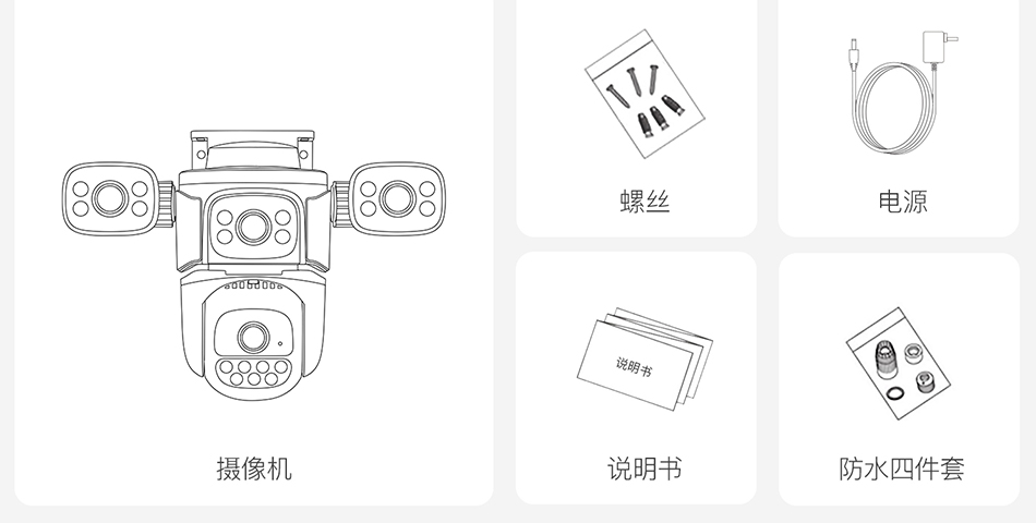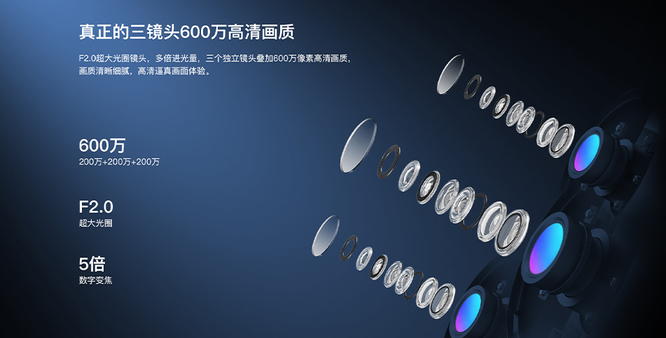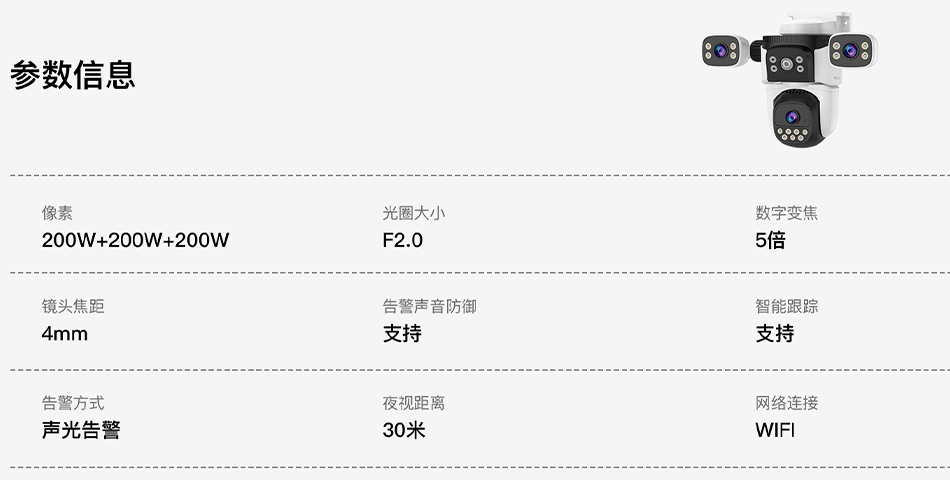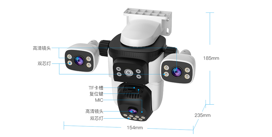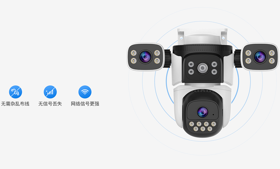 Three lens design, free combination of three images, clear live playback video for remote viewing on mobile phones, 6 million pixel high-definition monitoring of important outdoor locations in all directions.