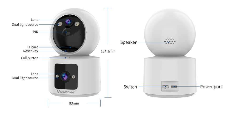 2 MP HD Imaging, Wide Field of ViewThe camera has a 2-megapixel ultra clear wide-angle lens, providing a wider field of view.With 2 white LED lights, you can get a clear and farther view at night.