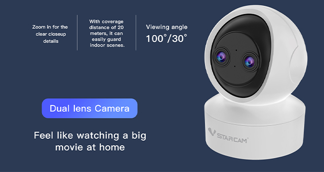 Long focus+short focus dual lensSuitable for scenarios such as families, teachers, and shopping malls, balancing global monitoring and key area details.Hybrid zoom, balancing distance and application.