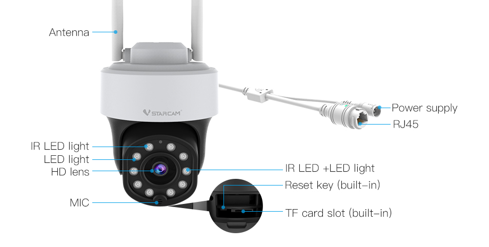 presenting clear color images in dark environments,The camera is equipped with high-power speaker and highly sensitive microphone, allowing for real-time remote voice intercom anytime, anywhere. The camera captures clear human voices and filters out noise in the on-site environment.