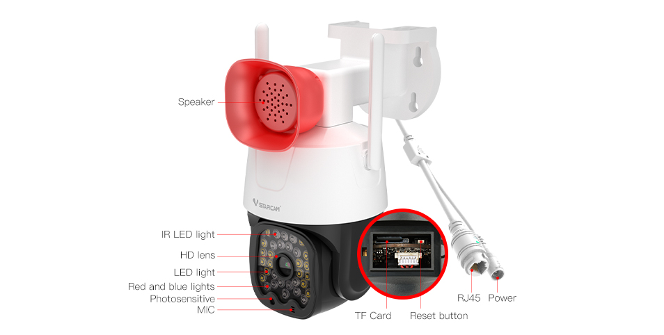 With the high sensitivity mic and high power speaker built in the camera, you can hear and talk to the person on the camera side in real time, wherever you are. The camera captures clear human voices, filters out environmental noise on site,and simultaneously records sound and images