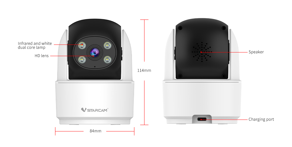 It comes with white and infrared LED lights to provide a clear full-color night view, and its spotlights ensure color night vision, making the night view as vivid as during the day.